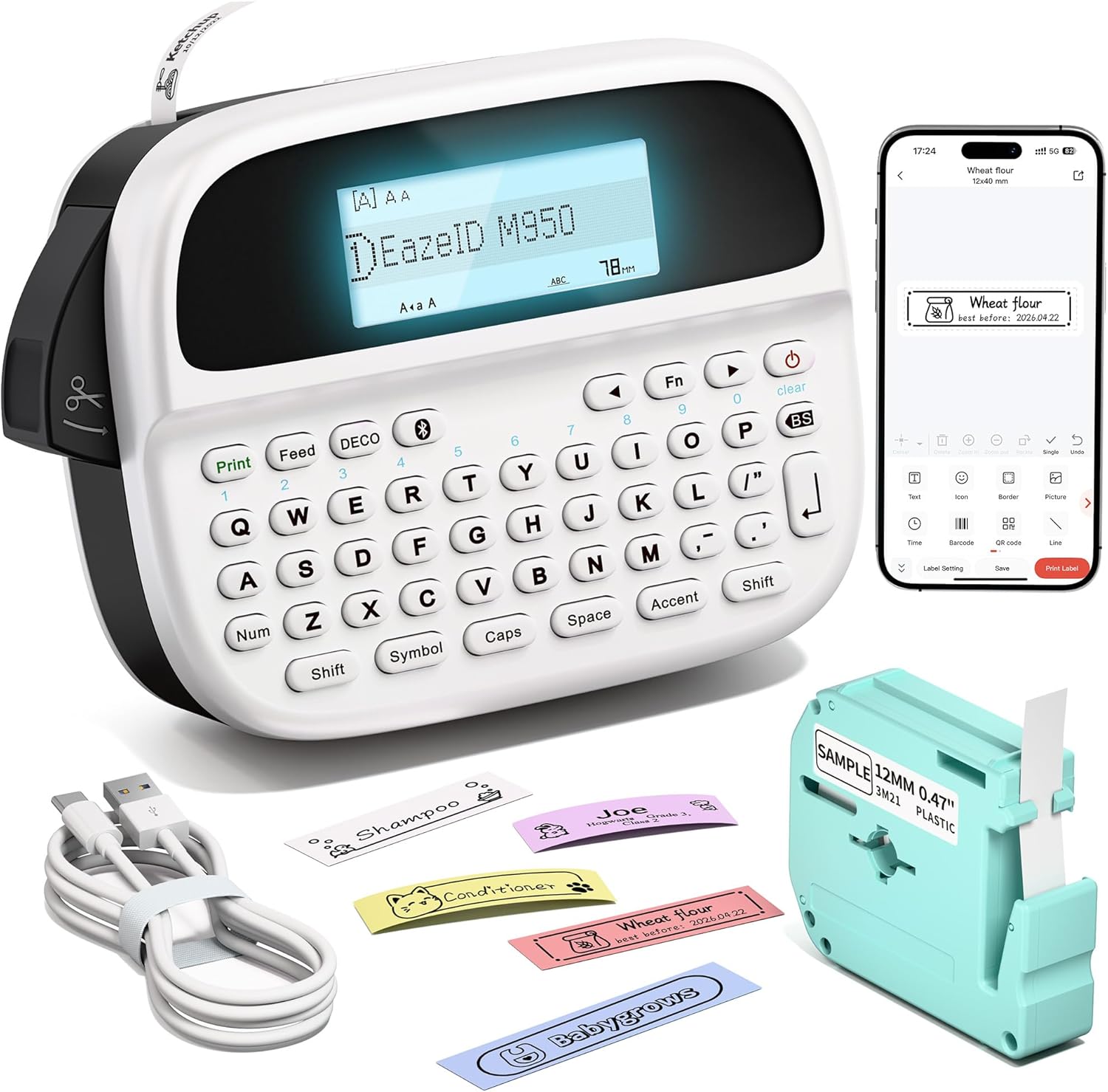 | Other Special Features of the Product | Handheld Label Maker Portable, QWERTY Keyboard Label Maker Waterproof Labels, Backlit LCD Screen Labeling Machine, Bluetooth Connectivity Labeler Machine with Tape, Rechargeable Label Maker Machine with Tape |