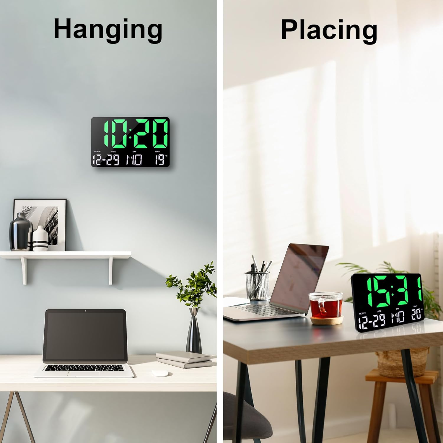 | Additional Features | 12" LED large display, Multifunctional display, Snooze & memory function, Wall clock & desk clock |