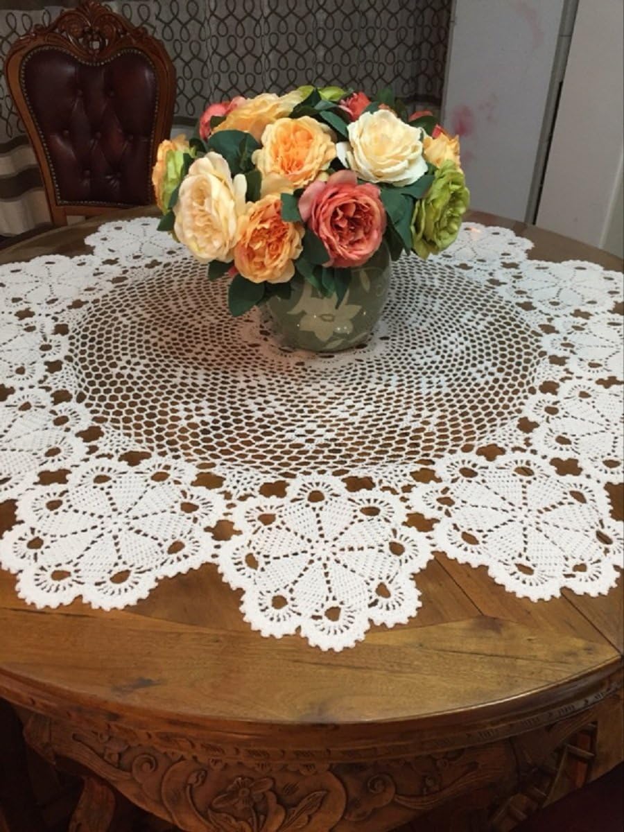 1.Handmade crochet table cover, traditional handmade skill 2. Made of high quality cotton with crochet pattern by hand, beautiful and unique tablecloth that enhance the natural beauty of a table 3.The collections come in two essential colors white and beige, with various sizes available for choice.It's perfect for your couch, dresser or dining table. 4.Washing Instruction: Hand or machine wash, gentle, It will be nicer after low temperature ironing 5. Is the tablecloth size suitable for my table? Please measure your table length and width and see the size reference below: Your table is 27 x 35 inch, Tablecloth width better to 27+(10x2)=47 inch, Tablecloth length better to 35+(10x2)=55 inch So tablecloth 47 x 55 inch will be suitable. Or sizesimlar to 47 x 55 inch will be suitable.