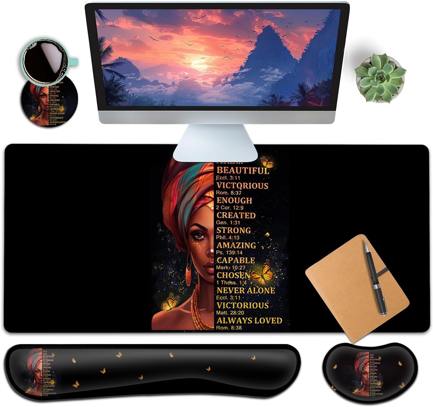 ❀【Extended Large Size】The size of large mouse pad for desk is 31.5×11.8inch,which is big enough to fit your full-sized keyboard, mouse, laptop,or other item on the desk,providing more space for professional gaming or office work. Besides,you can also use this extended mouse pad as a desk pad,writing pad,platform protection mat. Keep your desk clean and uncluttered. ❀【Ergonomic Design】The curved and shape design of wrist support set fit perfectly on the wrist. The soft memory foamand filled cushion part will slowly bounce back when your hand leave it, not easy to out of shape. Providing good support to your wrist, maximum relieve wrist stress and tiredness.❀【Ergonomic Design】The curved and shape design of wrist support set fit perfectly on the wrist. The soft memory foamand filled cushion part will slowly bounce back when your hand leave it, not easy to out of shape. Providing good support to your wrist, maximum relieve wrist stress and tiredness.