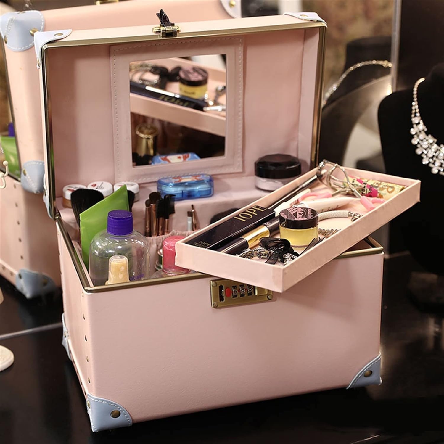 Product descriptionRetro cosmetic boxHandmade / password lock / storage boxMaterial: PU leather + upgraded PP material, waterproof and fall proof10 inches: length 27cm, width 19cm, height 19cm15 inches: 33cm long, 22cm wide and 21cm highNote: for manual measurement, the data is only for reference, and the physical measurement shall prevailThree digit code lock / comfortable portable / manual corner bagChoose what you loveAs a fashionable girl, how can we lose the makeup box?Appearance Supervisor - trend CInternal patternProduct parameters10 inches: length 27cm, width 19cm, height 19cm1.2kg15 inches: length 33cm, width 22cm, height 21cm1.6kgNote: for manual measurement, the data is only for reference, and the physical measurement shall prevailDetail display1. Three digit code lockCycle test to ensure that the lock function is intact and the number can be set easily2. Comfortable handleHumanized handle design principle, fit, comfortable touch, delicate and soft3. Manual corner wrappingIt adopts high-quality PU leather fabric, right angles on three sides and three-dimensional sewing technologyMethod of opening lockCrafted with hard ABS shell, the suitcase is not only lightweight for easy handling, but also sturdy to withstand the issues of travel. The premium zipper closure system provides a convenience trip