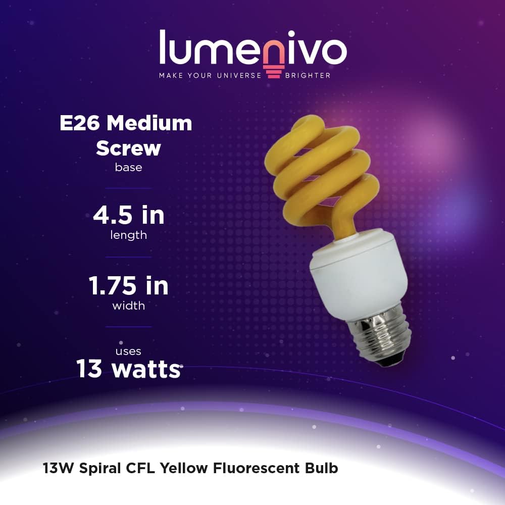 lumenivo 13W Yellow Light Bulbs Spiral CFL E26 Medium Base Porch Lights That Don't Attract Bugs - Lights Outdoors and Indoors - 120V - 4 Pack