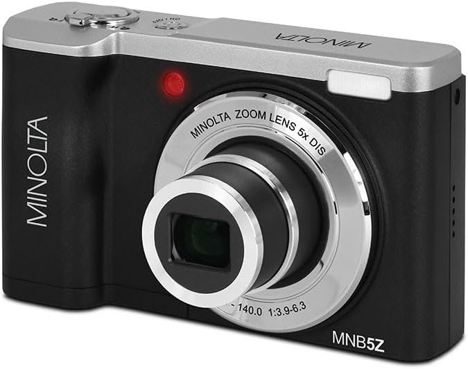 The MNB5Z is a compact powerhouse featuring impressive imaging capabilities in a pocket-friendly design. Capture life's best moments with stunning 56-Megapixel and crisp 5K Ultra HD video. Its 5x optical zoom lens brings you closer to the action, making every detail count. The 2.8" touchscreen offers easy access to controls, while creative modes like Time Lapse, Slow Motion, Photo Burst, and built-in Color Filters let you transform every shot into a work of art.Micro SD Memory Card Slot Gives you greater control over the amount of memory your camera has available Comes with a 32GB Memory cardSpecial Shooting FeaturesUse the selfie lens, Slow Motion, Loop Recording, Time-Lapse, and Photo Burst, add instant Color Filters, or switch to PC Webcam Mode for versatile shooting and connectivity.56-Megapixel still Image Resolution with Digital Image StabilizationPreserve the moment with stunning high-resolution 56 megapixel photos suitable for cropping or enlarging. An advanced built-in digital image stabilization system helps prevent blur caused by camera shake and vibration, so your photos come out crisp & clear no matter what!5K Video RecordingShoot crystal-clear high-definition video in 5K Ultra HD, at a frame rate of 30 frames per second.Dedicated Selfie LensTake flawless selfies and vlog-ready videos with the lens designed for front-facing shooting.Ultra Light and Co