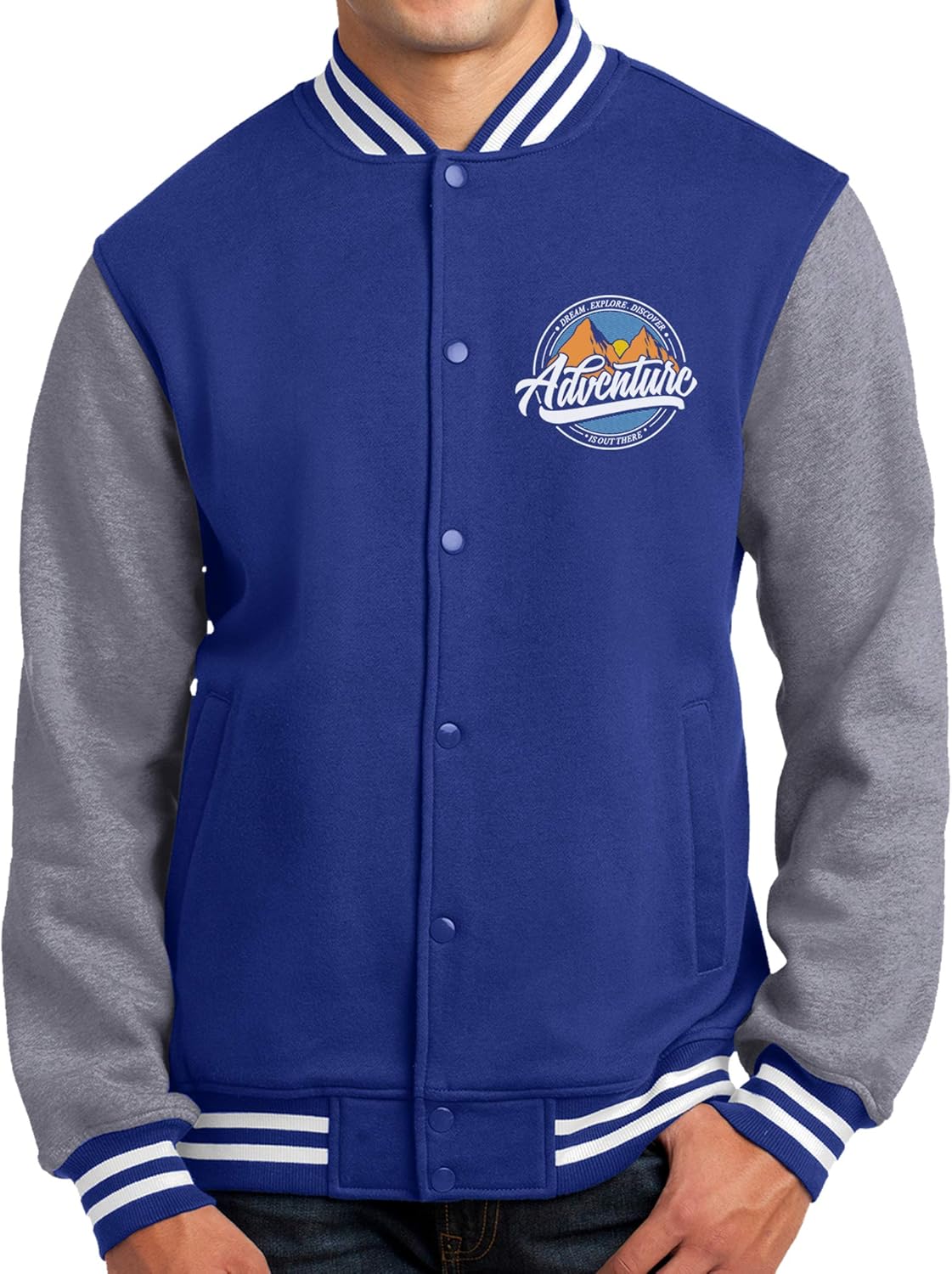 Personalized Fleece Letterman Jacket Add Your Photo Text Design Your Own for Men Custom Two Sided Jacket Design Your Own Men Letterman Fleece Jacket by adding your text, photo, image, logo and designChoose Your Size and Color then Click Customize Now button for typing your text. High Quality : We guarantee best quality on our men fleece jacket! Men Fleece Letterman Jacket has premium long lasting breathable garment which is combined with very soft and smooth touch. Excellent Gift : Birthdays, Christmas, Thanksgiving, Family Vacation, Couple Trip, Baecation, Halloween Party, Bachelorette Party, Valentines Day, Fathers Day, Holiday Parties, Teams, Businesses Functions and much more. Care Insructions : Machine wash cold, with like colors. Do not bleach. Warm iron if necessary. Do not iron decoration. Tumble dry low. Return and exchange is available for all customized orders unless there is manufacture defect on the products. Please make sure all of the options you choose and the info you provide are accurate prior to purchasing our products. 9-ounce, 65/35 ring spun combed cotton/poly fleece 2x2 rib knit collar, cuffs and hem with spandex Dyed-to-match twill-taped neck Snap front closure Front slash pockets
