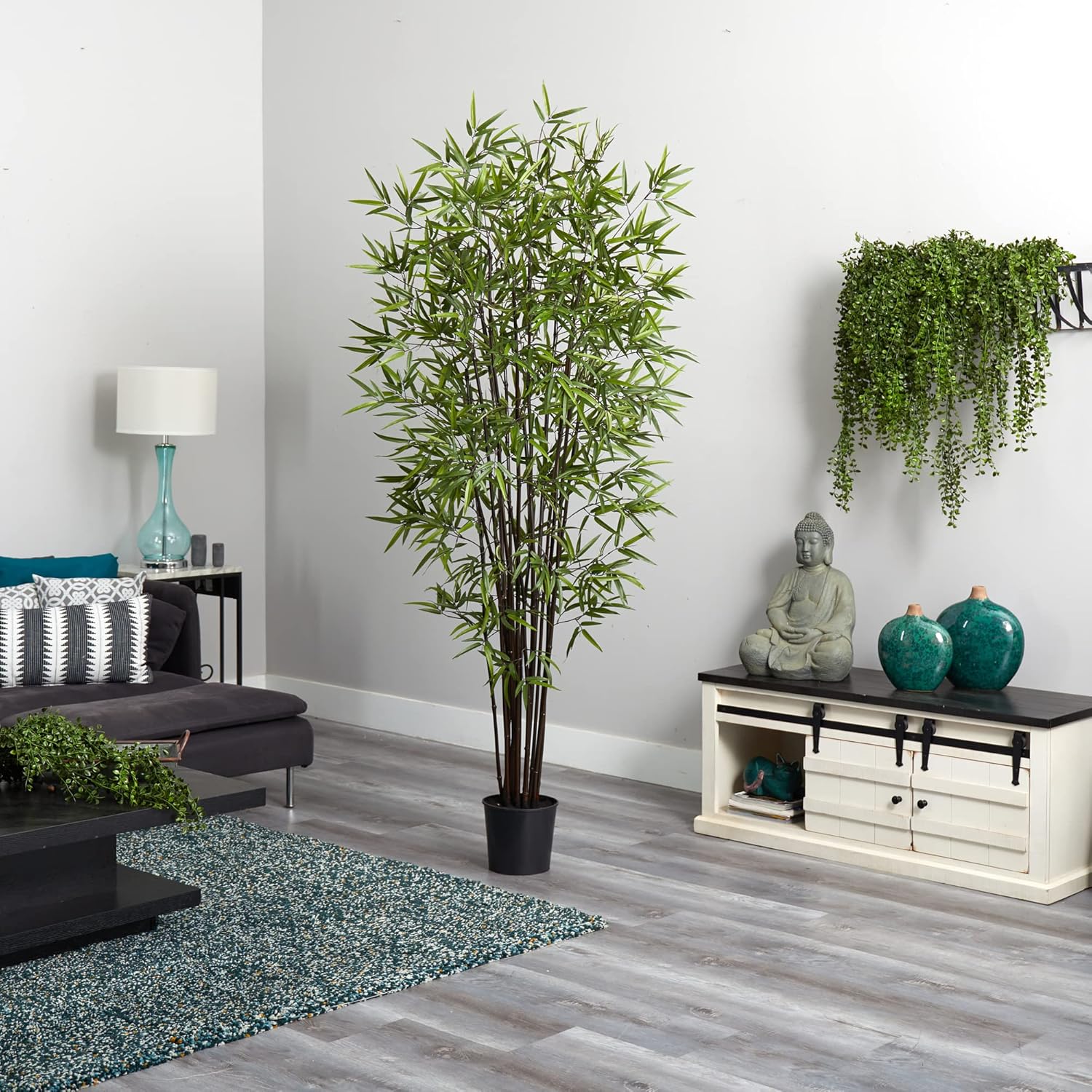 Add a touch of flair to your neutral home décor with this rare and exotic Black Bamboo Tree. Well known for its hardiness, this elegant looking bamboo will thrive with out any water, sunlight, or pruning. Bright slender crisp leaves are a nice contrast to the deep rich color of its trunk. A full 6 feet tall, this unique tree contains over seventeen-hundred authentic styled leaves. A basic black pot blends well with the dark colored trunk.