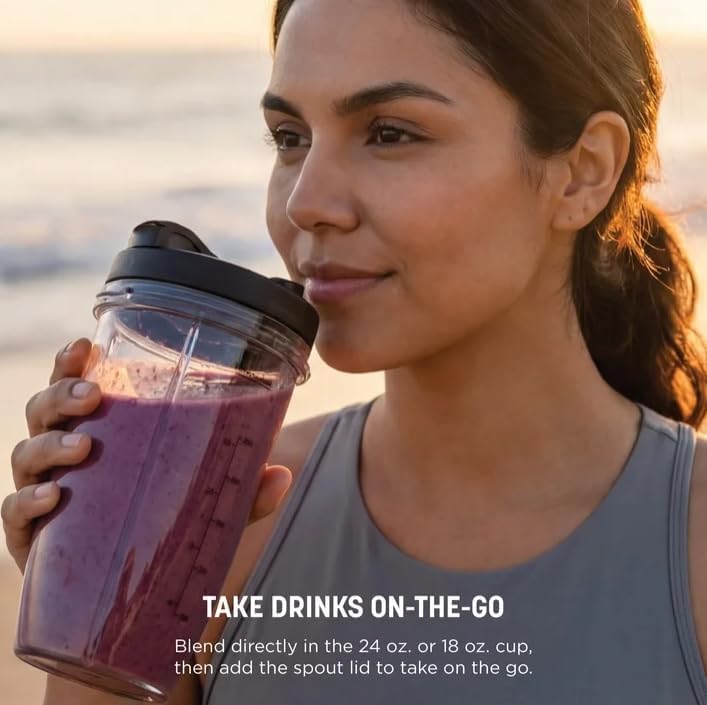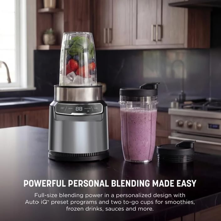 The Nutri Blender Pro with Auto iQ features a powerful 1000 W motor to pulverize tough ingredients. 2 preset Auto iQ Programs combine unique pulsing, blending, and pausing patterns to take the guesswork out of blending. The Pro Extractor Blades Assembly breaks down fruits, vegetables, and ice. Blend in your Single Serve Cup and use a spout lid to take your drink to go.