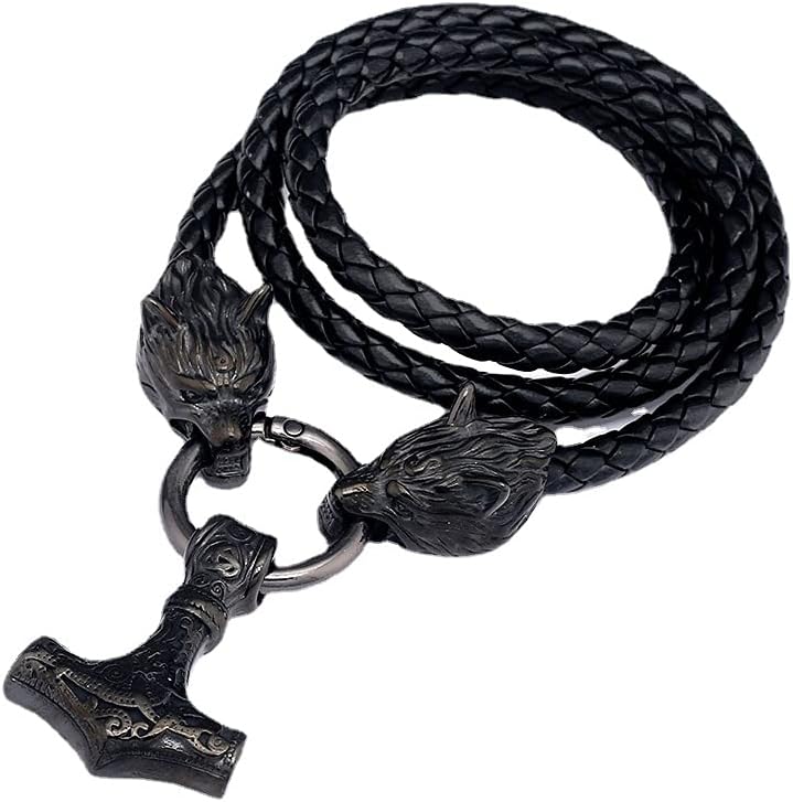 Thor was the god of war and thunder. Thor’s hammer could kill gods and bring down mountains. Mjolnir was used to bless births, marriages, and funerals. Vikings made amulets out of Mjolnir to wear as protection from storms.Mjolnir (Thor’s Hammer)Symbol of power, protection, blessingStyle Type: VikingMaterial: Stainless Steel + Leather chainColor: Black-goldSize: 4.3*3.1CMLength: 50/60/70CMGender: UnisexWeight: About 80 GPackage Situation:1Pcs* (Viking Mjolnir Pendant + Leather Braided Wolf Head Chain)It's hard to tell how incredible this product is... Once you touch it and experience it for yourself, you will understand! It is definitely the perfect gift for men, husbands, friends, dads, best friends or any other special festive.