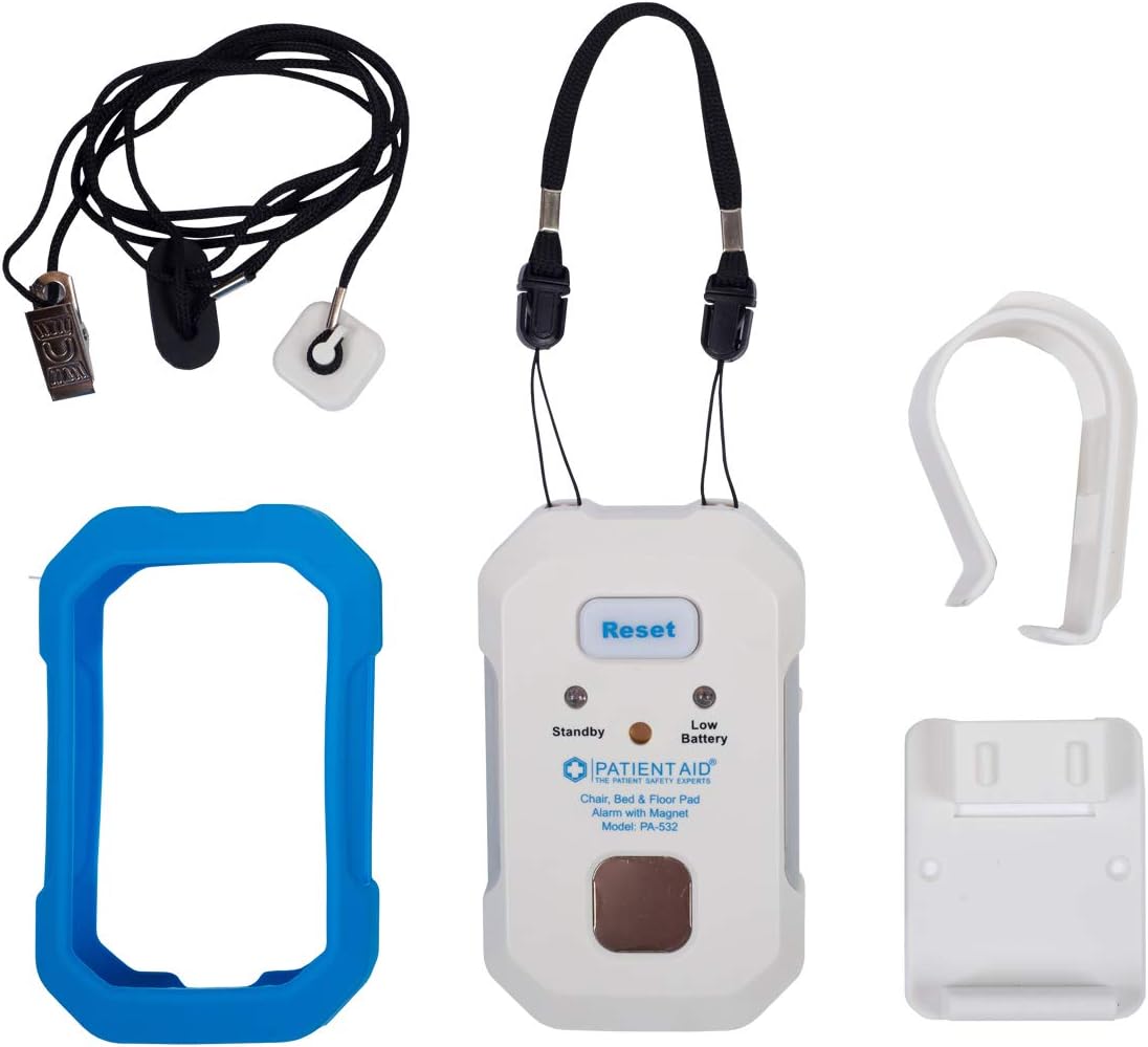 The Patient Aid Advanced Bed and Floor Alarm with Magnetic Pull Cord is an essential tool for caregivers dedicated to ensuring the safety and well-being of their loved ones. Specifically designed for use with elderly individuals or patients with limited mobility, this advanced alarm system helps prevent potential falls by alerting caregivers when a patient attempts to stand. The system is ideal for both home and professional settings, providing peace of mind through its thoughtful and user-friendly design. This versatile alarm can be installed quickly and easily, with several mounting options to suit different environments. Whether mounted on bed rails, walls, or flat surfaces, the system's flexibility ensures it can be positioned for optimal effectiveness. The 10" x 30" bed pad is constructed from durable, latex-free vinyl, making it both tear-and-water-resistant and easy to clean, thereby ensuring long-lasting comfort and reliability. The Patient Aid alarm system features clear and customizable alerts, allowing caregivers to select from three different ring chimes and adjust the volume to meet specific needs. For caregivers requiring discretion, a silent mode is also available for use while patients rest. This adaptability ensures the alarm can be tailored to individual circumstances, providing a personalized caregiving experience. Utilizing a secure magnet pull cord, the alarm is designed to notify caregivers reliably if a patient moves unexpectedly. This feature is particularly beneficial for those managing the care of seniors at risk of falls. Additionally, the system is designed in the US, emphasizing quality and practicality in real-life caregiving situations. The Patient Aid Advanced Bed and Floor Alarm ensures caregivers can confidently and safely care for those who rely on them, making it an invaluable asset in any caregiving environment.