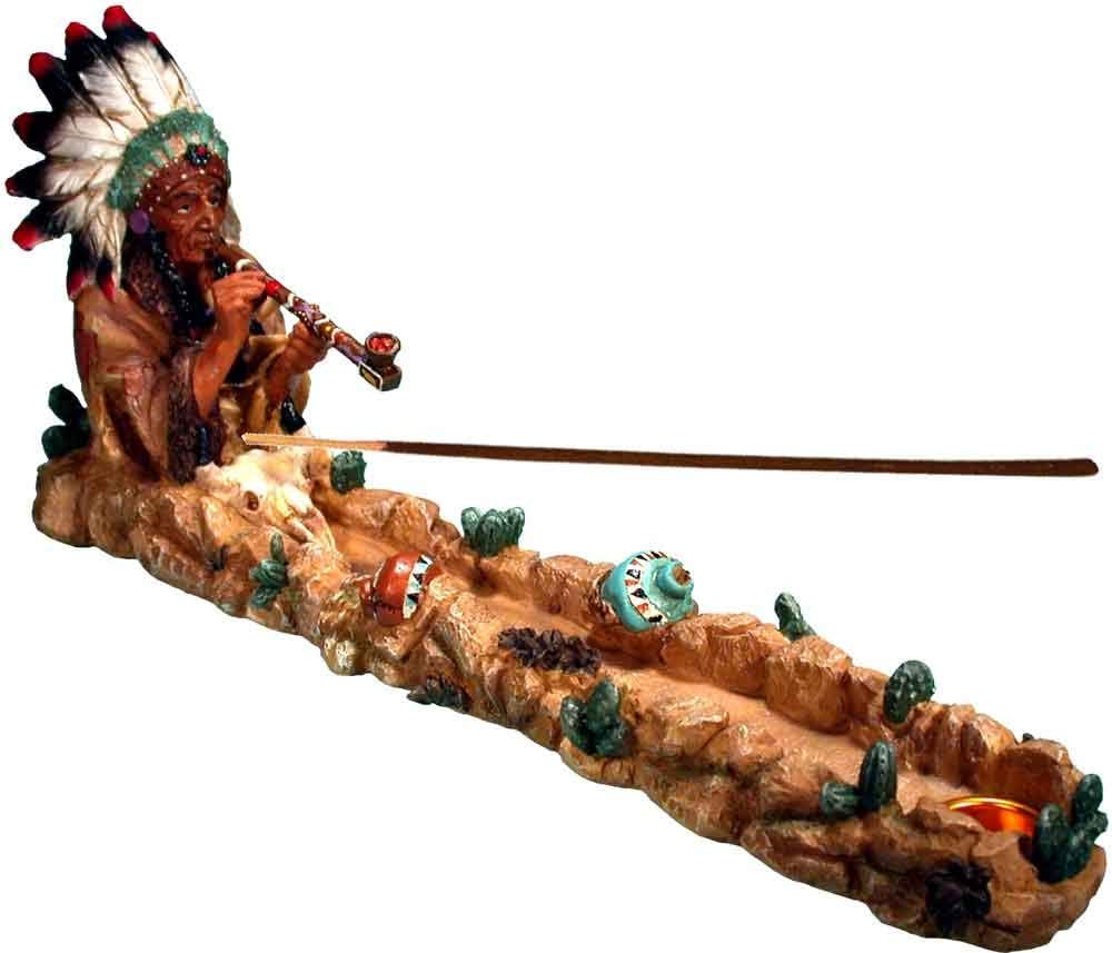 Peace Pipe Smoking Great Indian Chief, Stick and Cone Incense Ashcatcher Burner, by Nose Desserts Brand is made of durable polystone resin with superb hand-painted details, individually hand-crafted by our highly skilled craftsmen. INCLUDES FREE Nose Desserts Brand Incense, 5 sticks free for your enjoyment (Our selection). Peace Pipe Smoking Great Indian Chief Dimensions: 12-inches Long x 2.5-inches Wide x 4-inches Height. This Nose Desserts incense Burner will safely burn up to 11-inch incense sticks. Nose Desserts Stick Incense Ashcatcher Burner has many uses such as home decor decorative statuary, contemporary figurine or statuary, or as an interesting conversation piece. No two pieces are exactly the same, each one is unique, and there will be slight tonal variations in each one we hand produce. We produce high quality at an affordable and reasonable price in fantasy incense burners, Awesome Design and details! Your purchase Satisfaction is Guaranteed! If you are not completely satisfied for any reason with your purchase you receive, you may return your New Unused order with all accessories and with Original Packaging for a full refund of your purchase price within 30 days of receiving your order.