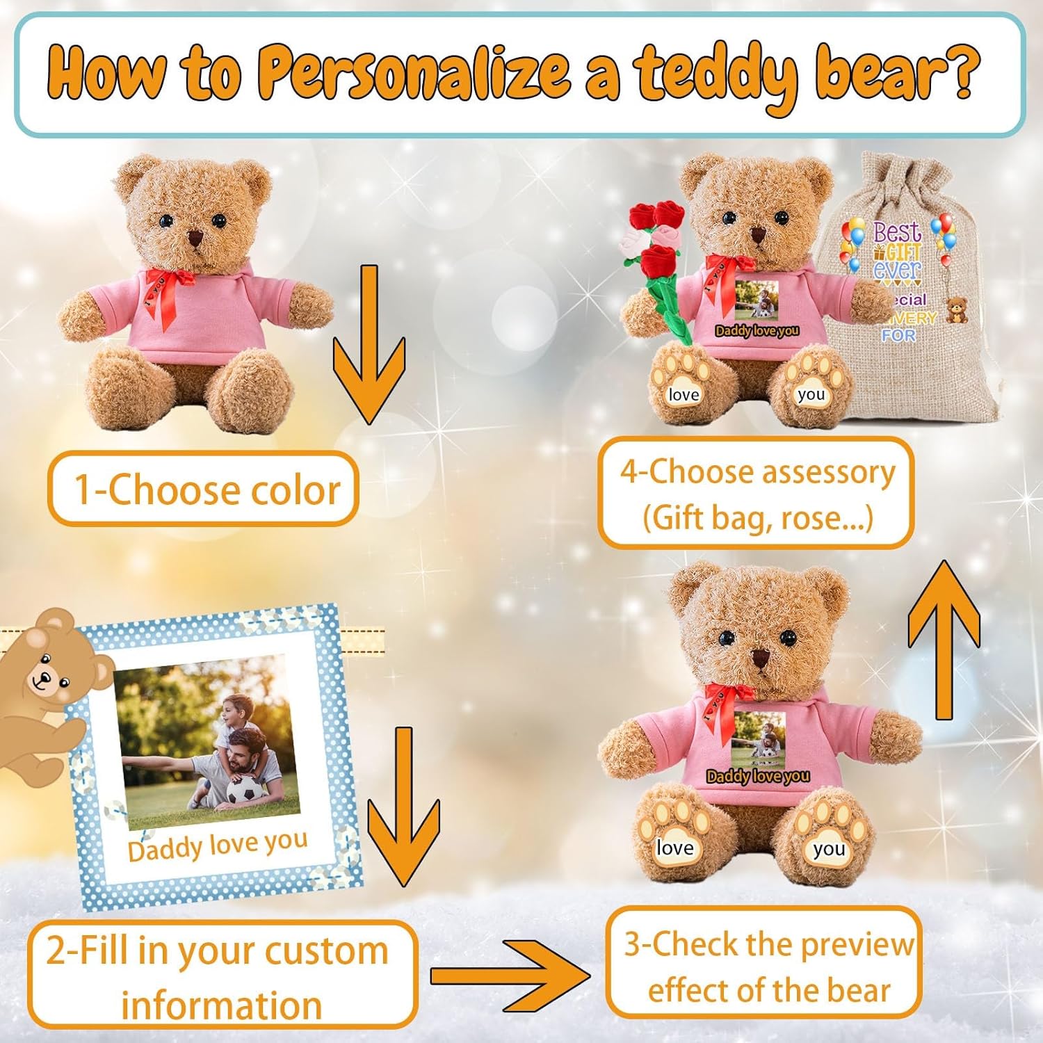 • Perfect Satisfaction Guaranteed: Just express congratulations and encouragement to your kids friends family adding blessing or text Funny photo on personalized teddy bear gifts. It is our top priority to provide a high quality and satisfactory experience for our customers. If you have any questions, please feel free to contact us at any time, we will always act immediately to ensure perfect customer satisfaction