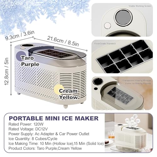 Are you tired of running out of ice cubes during those hot summer days? Our compact ice maker is here to elevate your refreshment experience. Designed for convenience, this ice maker produces clear square ice cubes quickly, making it perfect for enjoying chilled drinks anytime, whether at home, a picnic, or on the go. **Key Features:** 1. **Quiet Operation:** With a low noise level of just 60dB, this ice maker won't disrupt your relaxing moments or work environment, ensuring a peaceful atmosphere wherever you use it. 2. **Efficient Heat Dissipation:** Equipped with multiple heat dissipation vents, our ice maker maintains stable performance by efficiently managing the heat generated during operation, which prolongs its lifespan. 3. **Easy to Clean:** The straightforward design allows for hassle-free cleaning, saving you time and effort, so you can focus on enjoying your favorite beverages. **Specifications:** - **Product Name:** Ice Maker - **Color Options:** White, Purple - **Material:** Plastic, Food-Grade Aluminum Alloy - **Mount Type:** Countertop - **Rated Power:** 120W - **Input Voltage:** 110 to 240V - **Output:** 12V, 10A - **Ice Production:** 8 Cubes per Cycle - **Noise Level:** 60dB - **Product Dimensions:** 21.6×9.3×12.8 cm - **Package Dimensions:** 25×18×17 cm - **Net Weight:** 1.9kg **Package Includes:** - 1 Ice Maker - 1 Car Power Cable - 1 Power Adapter - 1 English Manual This ice maker is not just a kitchen appliance; it’s a lifestyle upgrade. Whether you're hosting a gathering, enjoying a quiet evening, or embarking on a road trip, having fresh ice at your fingertips enhances every occasion. Invest in convenience and enjoy the value this ice maker brings to your life. If you have any questions, don't hesitate to reach out; we’re here to assist you!