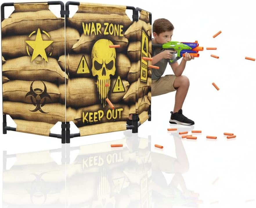 Dart Defense Battle Shield – Tactical Bunker Foam Blaster Shield for Kids, Foldable Barricade for Guns & Foam Dart Wars, Indoor/Outdoor Play. Package include: 1 x portable Barrier . guns are not included.
