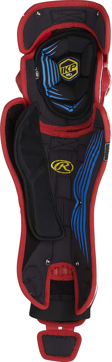 Whether crouching behind the plate, running to backup a play or facing a charging base runner, these Rawlings Mach baseball catcher leg guards provide maximum flexibility and comfort without sacrificing protection and exposing your knees or legs to possible injury. Patent Pending Intelligent Knee Positioning technology allows for a low-profile, full conforming fit. Quick adjustable Velcro straps with silicone backing prevent strap movement during use. Adjustable foot and toe flaps for full foot protection. Removable thigh and shin pads for easy cleaning. With the unpredictability that comes with playing behind the plate, safeguard your legs with these ultimate protectors. NOCSAE approved.