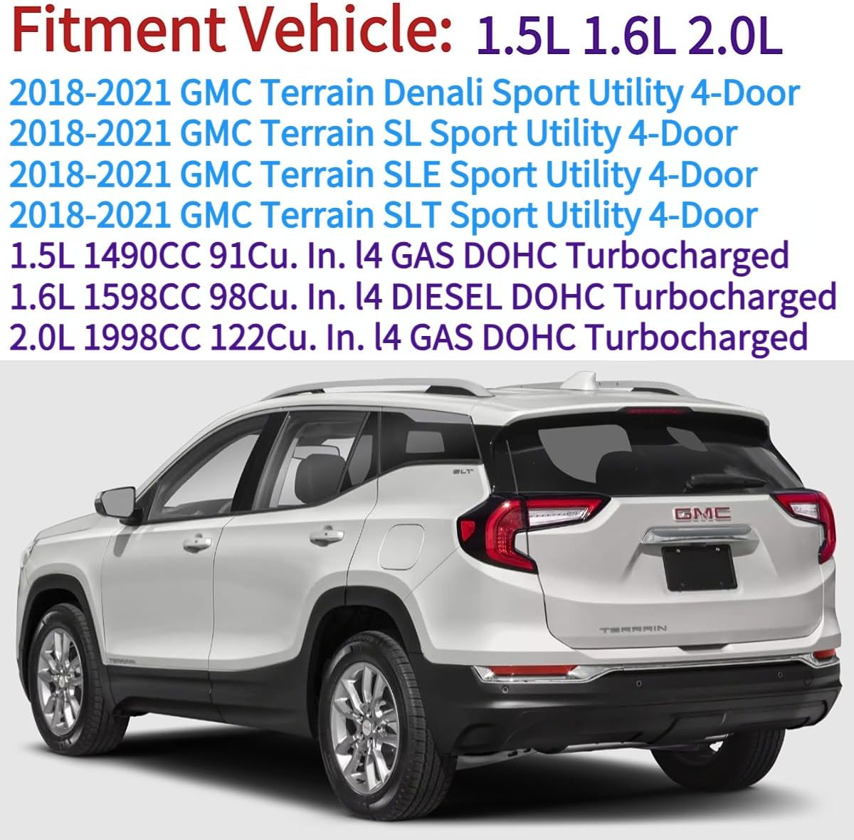 | Compatible with Vehicle Type | 1.5L 1.6L 2.0L, AT4, Car, Denali, SL, SLE, SLT, SUV, Sport Utility 4-Door |