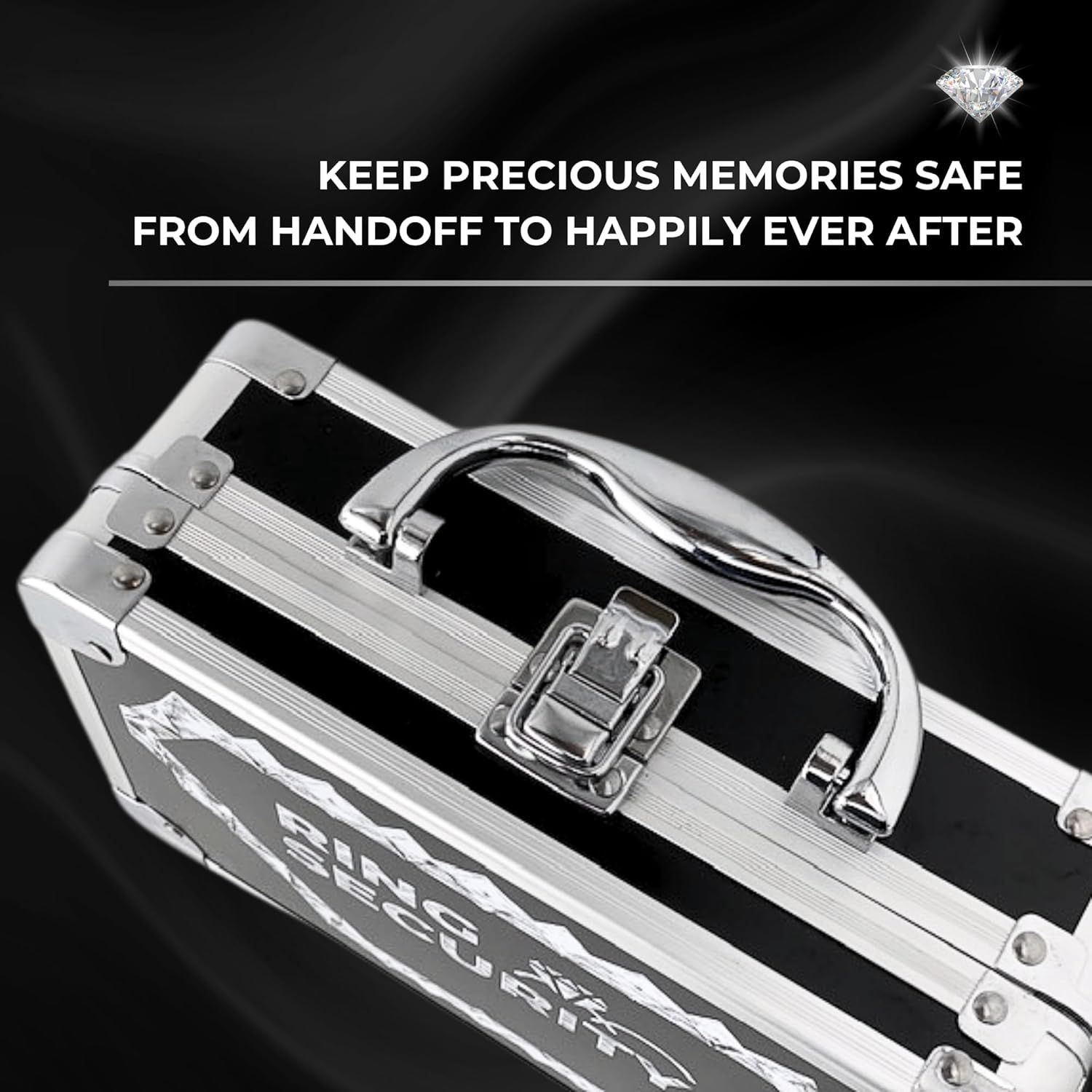 Introducing the Ring Security Wedding Ring bearer Case, the ultimate blend of fun, elegance, and practicality for your special day. This beautifully crafted case is perfect for any ring bearer, making them feel like a "Men in Black" special cop as they carry your precious rings down the aisle in style! And at the top of of the list for ring bearer gifts. Why Choose Our Ring Security Wedding Ring bearer Case?Jeweled Ring Security: Designed to keep your wedding rings safe and sound, this case features secure, cushioned ring slots to ensure that your rings are protected until they are exchanged.Perfect Ring Bearer Gifts For Little Boys (and Girls): Whether your ring bearer is a child or a child at heart, this case adds an exciting and professional touch to their role. It’s lightweight, easy to carry, and fits comfortably in their hands, allowing them to confidently take on their important job.Photogenic Prop for the Big Day: Not only does this case provide excellent wedding ring security and protection, but it also doubles as a photogenic prop, perfect for capturing stunning close-up shots of the rings. Engagement Gift Idea: Looking for a unique engagement gift? The Ring Bearer Security Set is not only great for weddings but can also be a fun, thoughtful engagement gift for couples. It’s a charming keepsake they’ll treasure long after the big day.Memorable Ring bearer Gift: Make your ring bearer feel extra special with this unique gift. They'll love playing the role of the “special cop” with their very own ring security briefcase wedding for kids. After the wedding, they can keep the ring security box wedding case as a fun memento, reminding them of the important part they played in your celebration.Crafted with attention to detail, the kids briefcase features premium materials to ensure both durability and style. It’s the perfect way to showcase your rings while adding a touch of fun and sophistication to your wedding ceremony!
