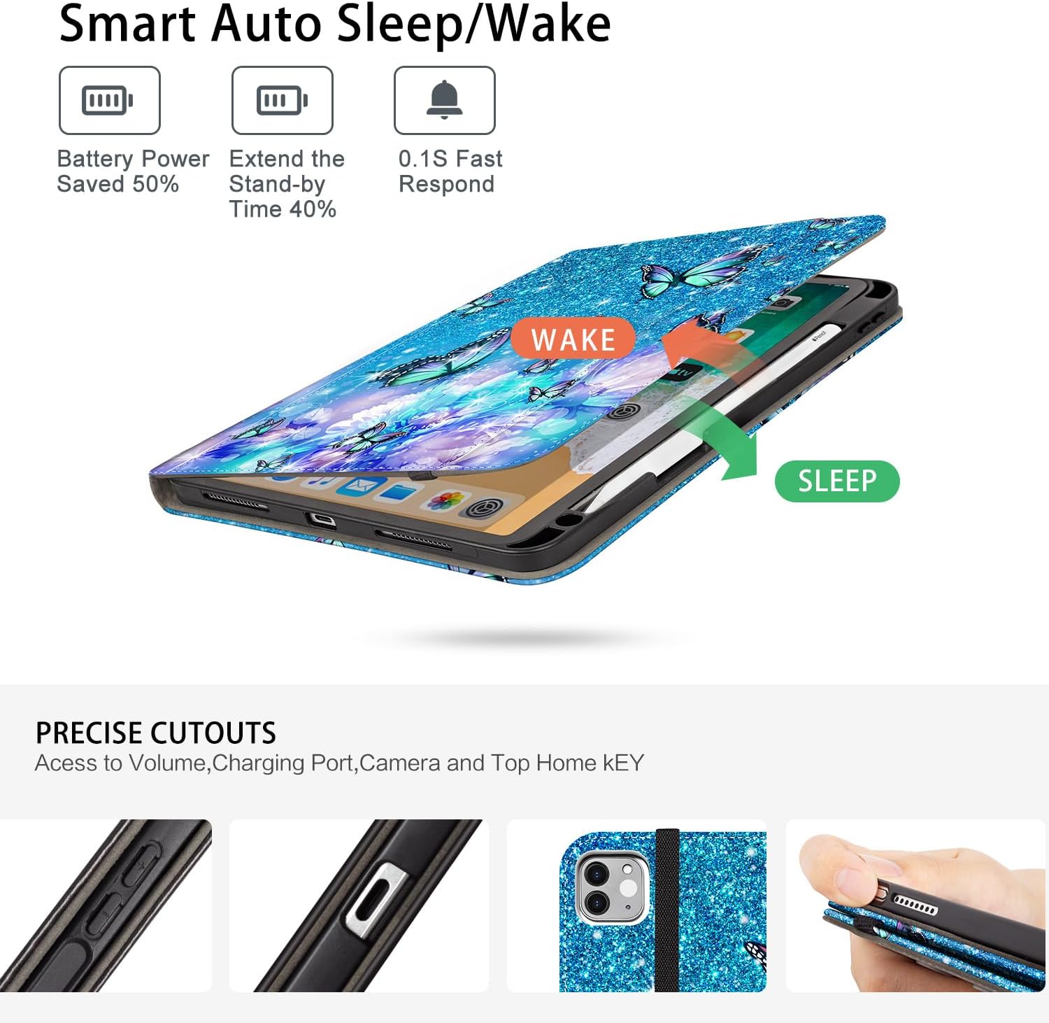Introduction of Cutebricase iPad 10.9 Case / iPad Pro 11 inch Case/iPad Air 11-inch Case with Cute Flowers Butterfly Pattern:Compatible Model: ▶For iPad Air 11 inch Case M2 2024▶Case for iPad Air 11-inch (M3) 2025 (Model: A3266 / A3267 / A3270) ▶For 10.9 inch iPad Air 5th Generation Case 2022 (Model: A2588/A2589/A2591) ▶For 10.9 inch iPad Air 4th Generation Case 2020 (Model: A2072/A2316/A2324/A2325) ▶For iPad Pro 11 3rd Generation 2021 ( Model: A2301/A2377/A2459/A2460 ) ▶For iPad Pro 11 inch 2nd Geneeation 2020 (Model: A2228/A2068/A2230/A223) ▶For iPad Pro 11 inch Case 2018 (Model: A1980/A2013/A1934/A1979) 360° Rotating iPad Air 11-inch CaseUnique 360 degrees of flexible to rotate and built-in anti-slip grooves, which brings you into the ultimate using experience in multiple landscape and portrait viewing stand angles.Smart Auto Sleep/ WakeMagnetic iPad ipad air 5th generation Case instantly wakes up iPad when opened, and makes it go to sleep once closed (extend battery life).Built-in Pencil Holder ChargingConvenient for you to carry your iPad pencil without losing, you could use your pencil anytime and anywhere.Front Document pocketDocument Card Pocket is designed for you to store your business cards, cash, bank cards, notes or bills while on the goHand StrapBuilt-in hand strap, coupled with an elastic band to keep the case OPEN, give you a comfortable single-hand use experience.Full-Around ProtectionThis 10.9/11 inch ipad case sports a unique and individual design made from premium material. Offer full protection to the edge of your iPad. Effectively keeps iPad away from damages of dropping, bumps and shocks.Precise CutoutsThe perfectly aligned cutouts of the charging ports, camera and speakers give full access.About USThe Cutebricase is a team that focuses on original design.We have designers with creative fashion ideas and an excellent service team dedicated to providing customers with beautiful and practical products.