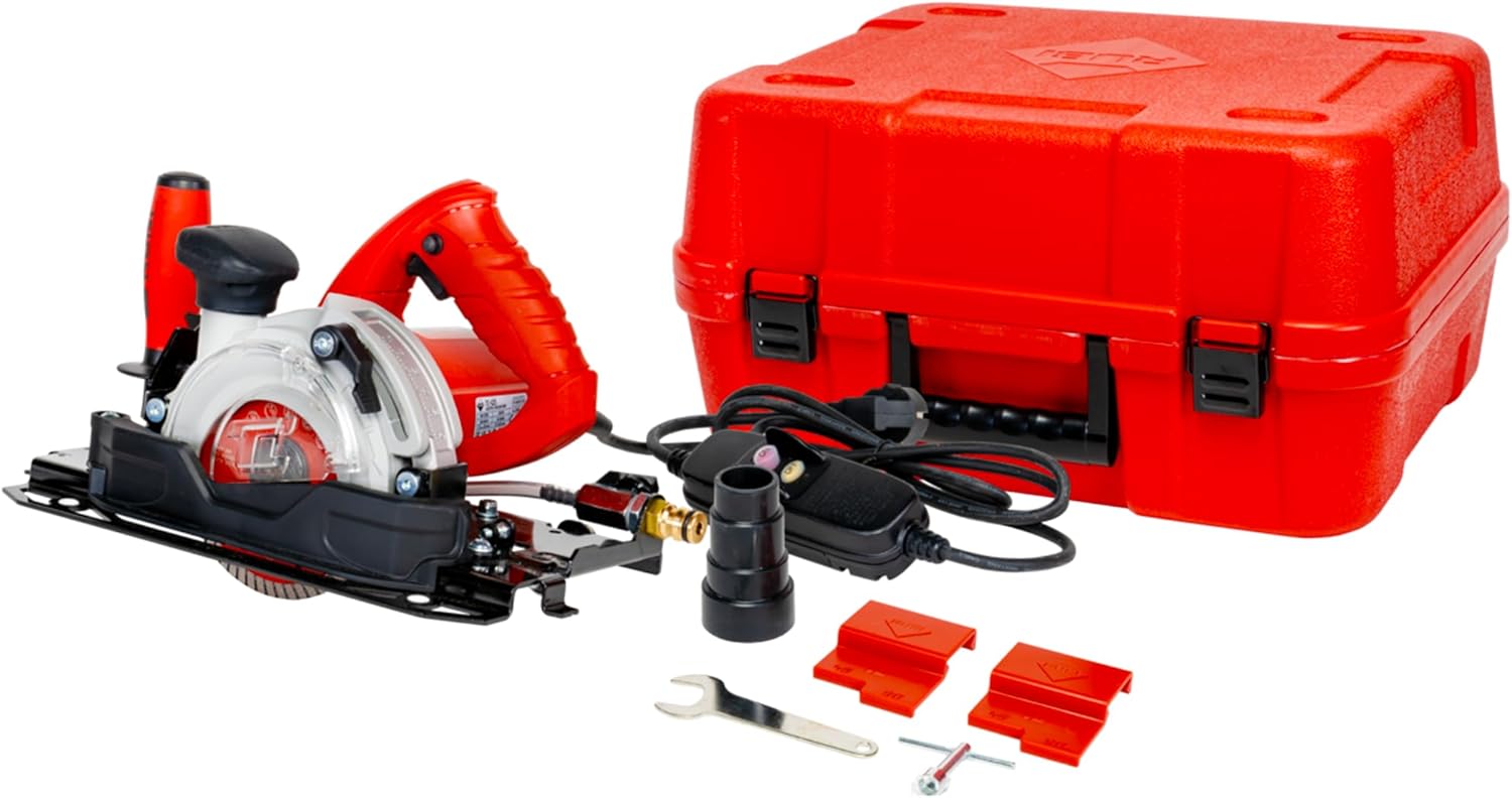 The TC-125 G2 is a circular saw specially designed for cutting porcelain slabs and all types of ceramic tiles. It is also suitable for natural and sintered stone. It is particularly suitable for large format tiles. The TC-125 is equipped with a sliding platform on adjustable radial bearings. It is essential to use it on SLIM SYSTEM G2 slides. The double dust reduction/control system makes the TC-125 suitable for; dry cutting with direct connection to the vacuum cleaner (Ø 32 mm)* or wet cutting with the regulating valve and hose connection (Ø 16 mm)**. Compatible with Ø125 or Ø115 mm blades (suitable for blades with reinforcement plate). Includes SAFETY lock switch to prevent unintentional starting. Electric cable with PRCD. The blade protector, made of die-cast aluminium with a transparent Poly-carbonate cover, has a quick opening and closing system. It makes EASIER to change the blade and MINIMISES particles and water ejected. The tilting side guard for mitre cutting REDUCES water splashes and IMPROVES dust extraction. The TC-125 is supplied complete with the TVR-125 SUPERPRO blade (for dry cutting), carrying case and accessories (vacuum cleaner adapter and 2 cut positioners). EASY transport and handling. To complete the TC-125 G2, it is necessary to purchase reference #51949, which includes the guides (2 x 155 cm and 1 x 65 cm), the suction cups and the clamps, in addition to the circular cutter reference with the desired voltage. *The TC-125 also includes an adapter for the vacuum cleaner (Ø37, 42 and 50 mm). **The TC-125 does not include the quick coupling for the water hose.