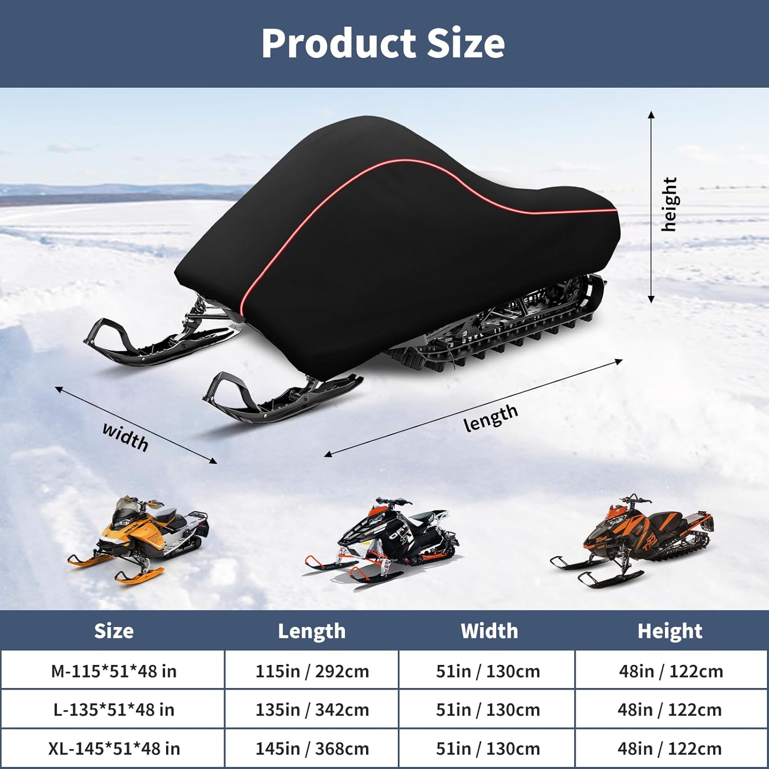 | Coverage | Snowmobile, Full Exterior Coverage (115''x 51''x 48'') |