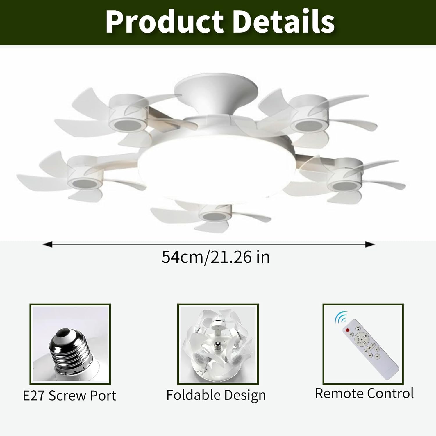 | Included Components | 1x Socket Ceiling Fan Lights, 1x Remote Control |