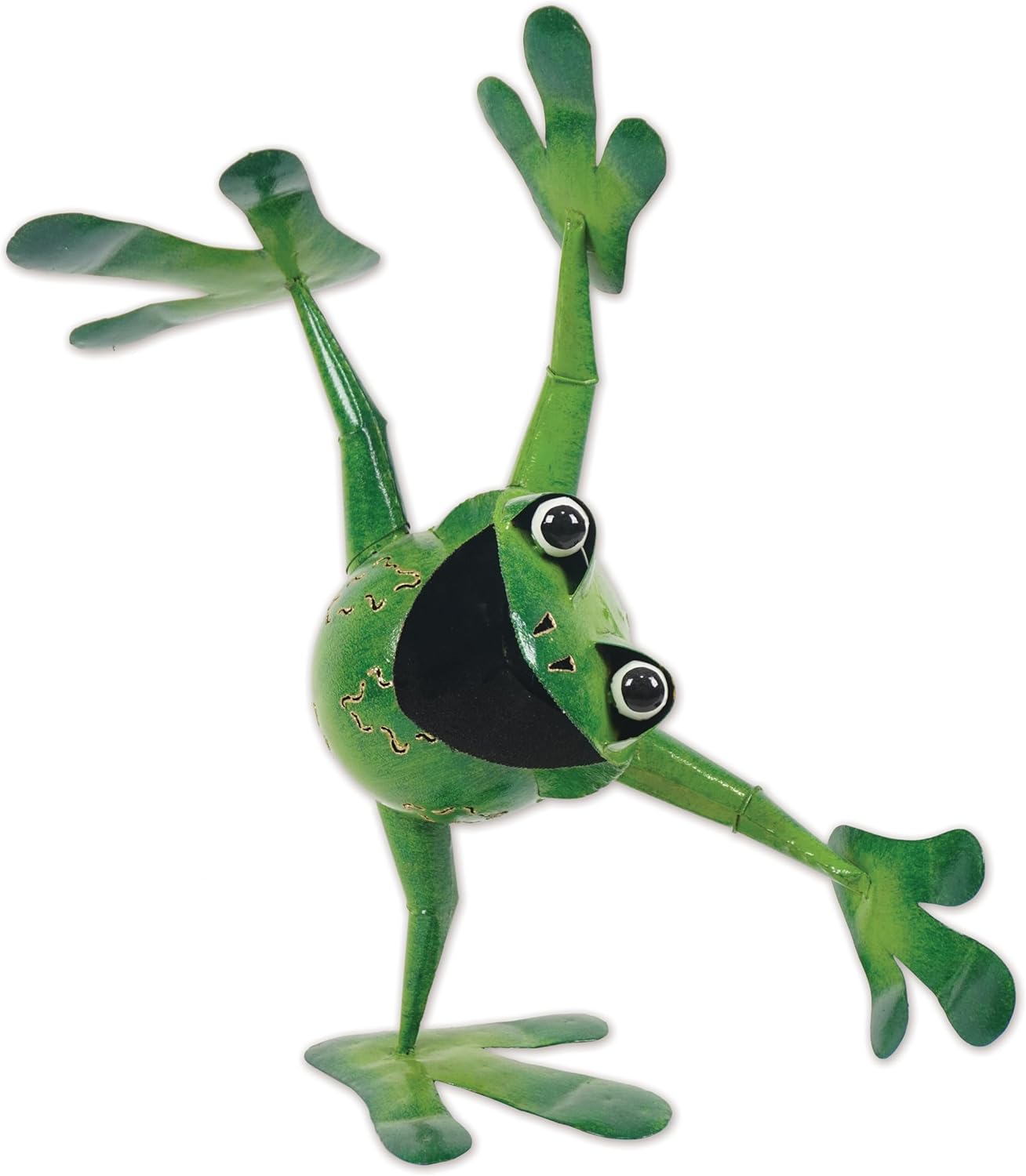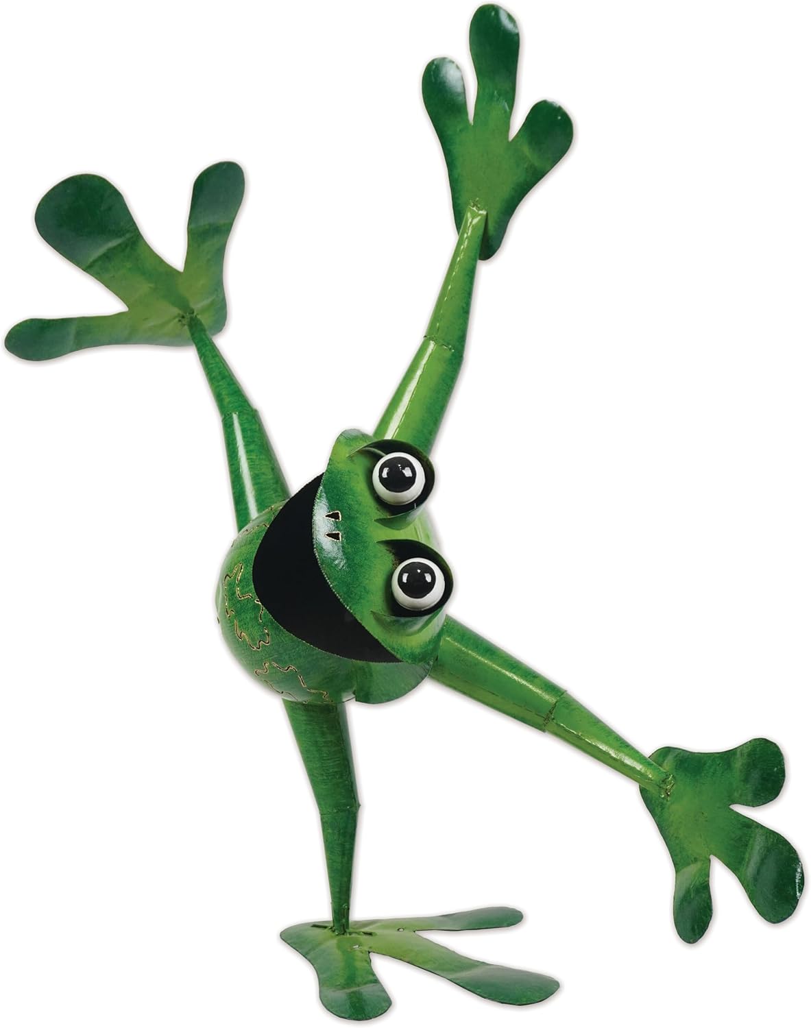 Jumper the Frog stands tall and cheerful with a big grin and laser-detailed belly. Made of high-quality, powder-coated metal for long-lasting enjoyment, this sculpture measures approximately 19.75" x 10.5" x 20" and comes with a ground stake for easy display. For years, Sunset Vista Designs have been the design leaders in outdoor, indoor and seasonal decor; including wind chimes, wind spinners, plant picks, lawn signs, bird feeders, hummingbird feeders, bird houses, frames, wine charms, clever signs and chalk boards. Whether it's a gift for a friend, loved one, colleague, or co-worker, or, best of all, one for yourself, turn to Sunset Vista for something special, something fun and something they'll remember.