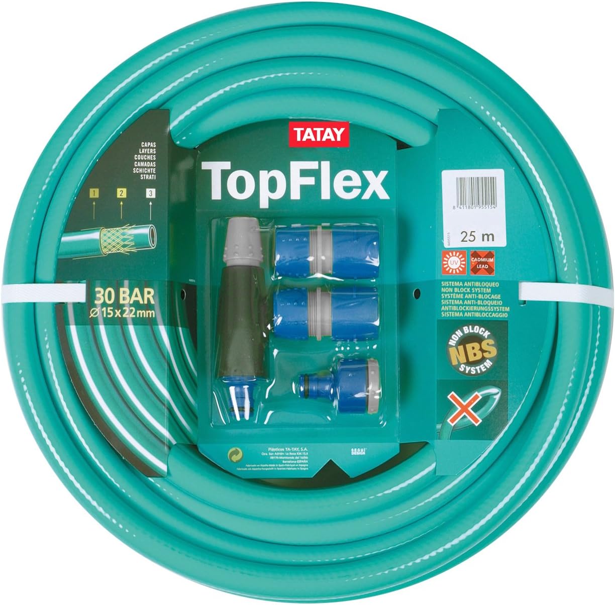 PVC Garden Hose 25 Meters Long Can withstand pressure up to 30 bar. BPA and cadmium free. Thanks to the material it is made of, the hose is UV-resistant and therefore very weather-resistant. Ideal for the simple orchard garden wooded garden, crops plantings. Garden hose in green. At TATAY we have various accessories for garden or garden hose such as a trolley for the hose or hose heads for the hose as needed.