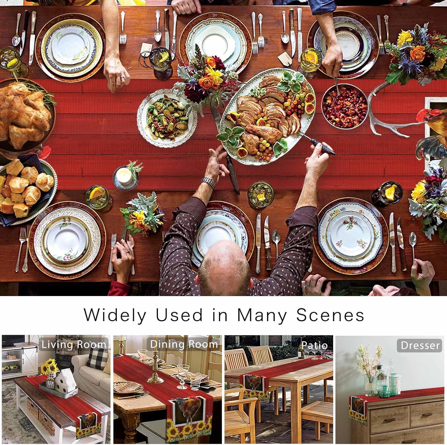Material: Linen Burlap Fabric Table Runner Size: 13 Inches Wide By 70 Inches Long 13 Inches Wide By 90 Inches Long 14 Inches Wide By 72 Inches Long 16 Inches Wide By 72 Inches Long 18 Inches Wide By 72 Inches Long Please measure the matching table size before purchasing Exquisite Pattern Design Durable Table Runner design with farmhouse,stylish,classic,elegant,modern,vintage,natural pattern Decoration Perfect for holiday,Christmas,parties,birthday,parties,wedding,baby shower,,mother’s day,father’s day,Easter,Halloween,Valentine's day,Thanksgiving day,new year Idea Gift This dinning table runner stylish and durable,compact and delicate,it is the best gifts choice for women,men,girls,boys,friends