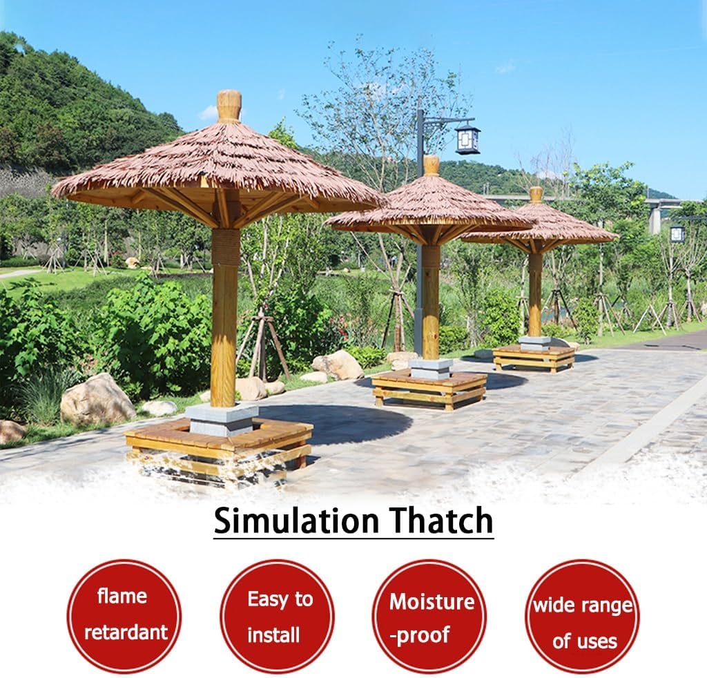 ▶Product specifications:Product Name: Simulation ThatchProduct material:Plastic PE materialProduct size:1pcs:0.5X0.5cm(6pcs/㎡)Product features: no rust, durability, easy installation, etc.Product use: hotel / hot spring resort / park landscape / seaside barbecue bar / restaurant decoration, etc.▶Product Features :1. The polymer resin simulation thatch is formed by pressing the polymer plastic components through a mold,Overcome the natural thatch easy to fade, short use of time and other shortcomings.2. The artificial thatch is added with flame retardant and other ingredients; it reaches the B1 flame retardant effect.3. Present the color and texture of natural thatch. can last for more than ten years.4. Installation is simple and quick. No need for regular maintenance and replacement like natural thatch, eliminating the need for maintenance and worry-saving.