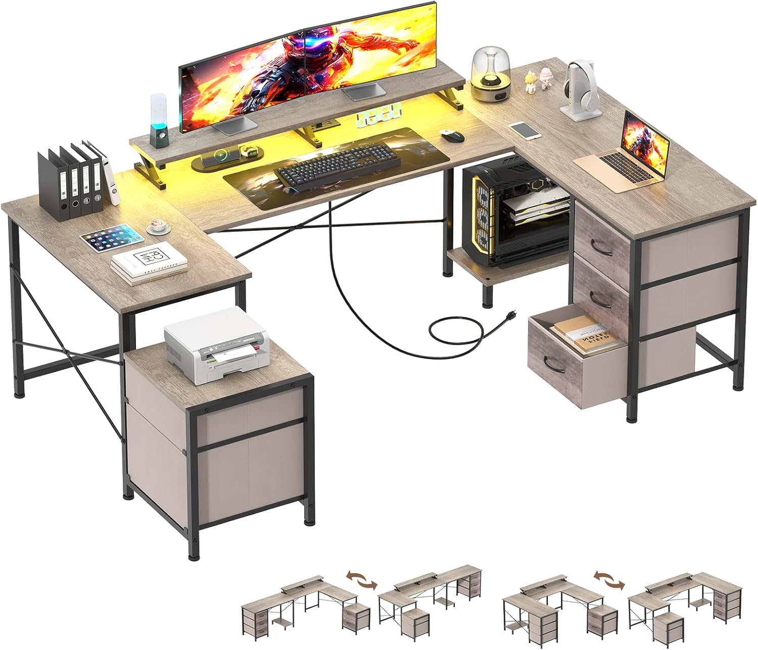 | Storage Options | elevated monitor stand, multiple shelves |