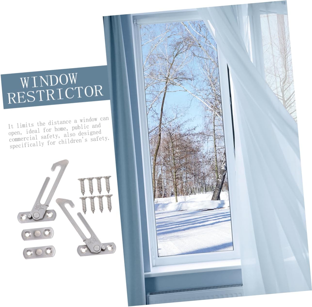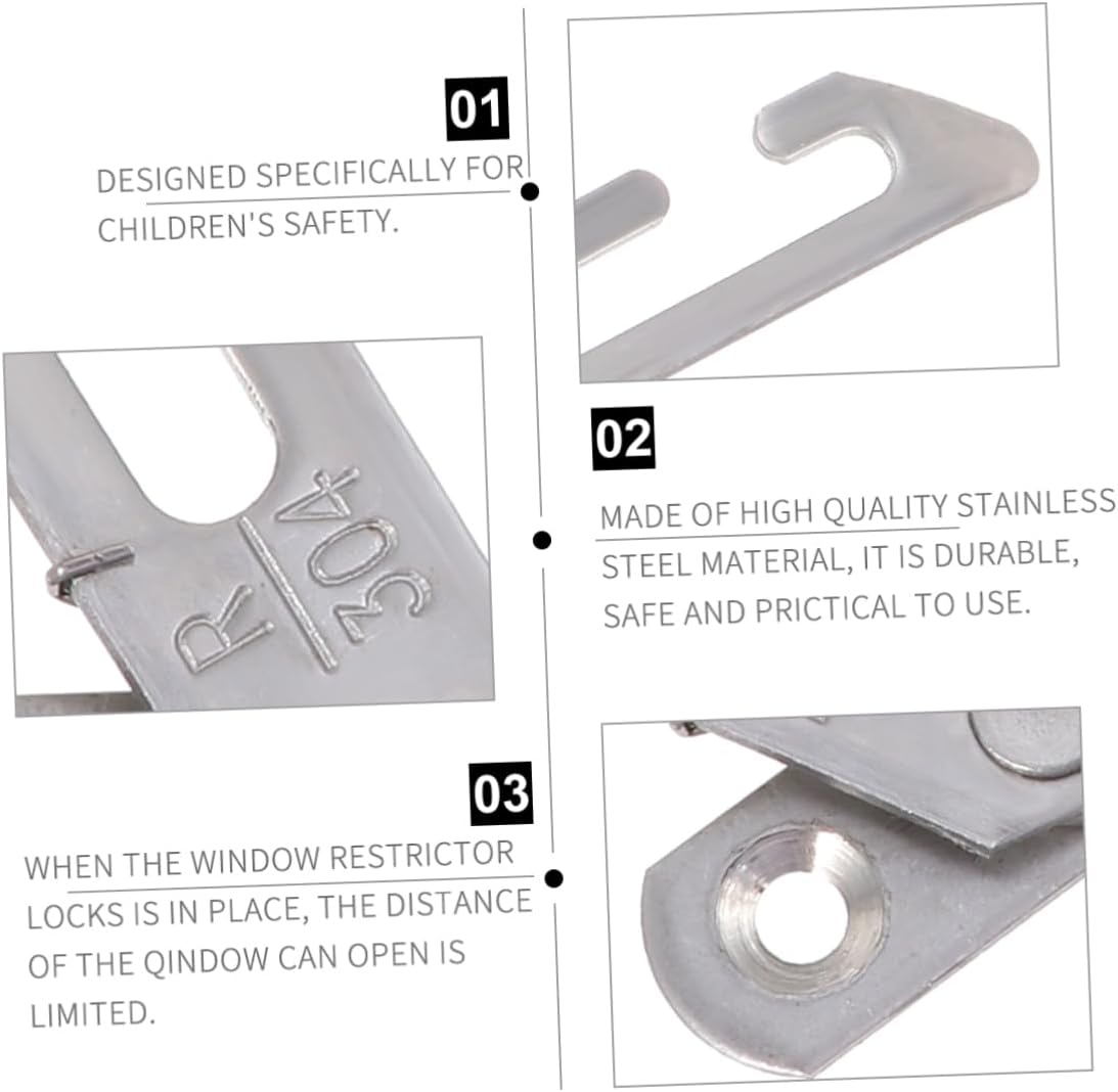 Package Include 2 x Left Window Restrictor 2 x Right Window Restrictor 16 x Screws Characteristics - Color: Silver Sliding Window Hook. - Material: Stainless Steel Stainless Steel Window Lock Window Restrictor Locks Window Security Bar Locks Sliding Glass Door Locks Basement Window Bars Window Security Bars Internal Window Latches Window Interior Security Bars Window Protection Bars Window . - Size: 8.50 x 5.00 x 1.00 cm/ 3.34 x 1.97 x 0.39 inch door locks. - This set have 2 pieces window restrictors which includes left and right, and 8 pieces screws door lock. - The window restrictor can be used on the swinging window and the casement window casement window hardware. - It limits the distance a window can open, you don not have to worried the safety of stainless steel s hooks key accessories sliding door locks Window Restrictor Locks Window Restrictor Stainless Steel Window Lock Sliding Window Hook Window Locks for. - Made of premium stainless steel material, it is safe, durable, and priatical to use sliding door lock. - Special detachable design makes it easier to change the position of oping the window to fix the window with small distanec door lock key accessories door locks door locks casement window latch window limiter.Goods DescriptionSliding Glass Door Locks These window restrictors are made of premium stainless steel material, it is safe, durable, and priatical to use.Basement Window Bars It limits the distance a window can open, you don not have to worried the safety of