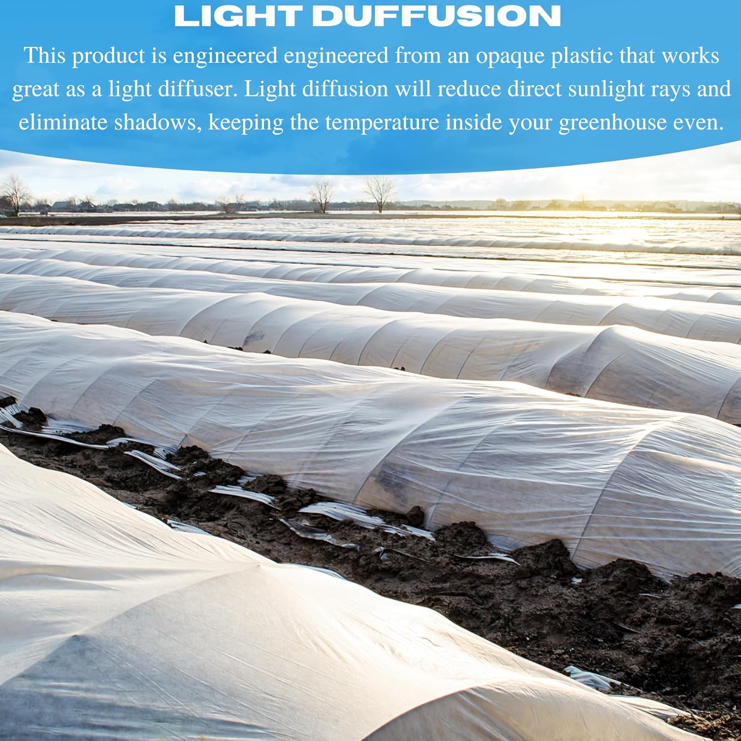 At VBS we take pride in giving our customers the strongest and most reliable Protective Clear Overwintering Film in the industry so that they can just worry about their projects and not the product. The film helps reduce heat loss from the greenhouse, minimizing the need for additional heating during winter. By retaining heat more effectively, it can significantly lower energy costs associated with greenhouse heating. This is particularly important in regions with colder climates where heating expenses can be substantial. This product is engineered engineered from an opaque plastic that works great as a light diffuser. Light diffusion will reduce direct sunlight rays and eliminate shadows, keeping the temperature inside your greenhouse even. This product has 55% light transmission which will keep a consistent temperature by reducing hot spots and cold spots. This percentage of light transmission will make sure that your plants get the correct amount of light during the winter. By shielding plants from extreme cold and frost, the film helps maintain more stable temperatures inside the greenhouse. This stable environment promotes healthier plant growth and development, as well as better crop yields. It also protects plants from wind damage, reducing the risk of breakage or uprooting. This product is engineered from strong and durable opaque plastic that is built to withstand all of the elements and be able to last for a long time.