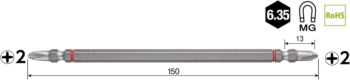 • Blade edge: +2, Total length: 5.9 inches (150 mm), Hex diagonal: 0.25 inches (6.35 mm)