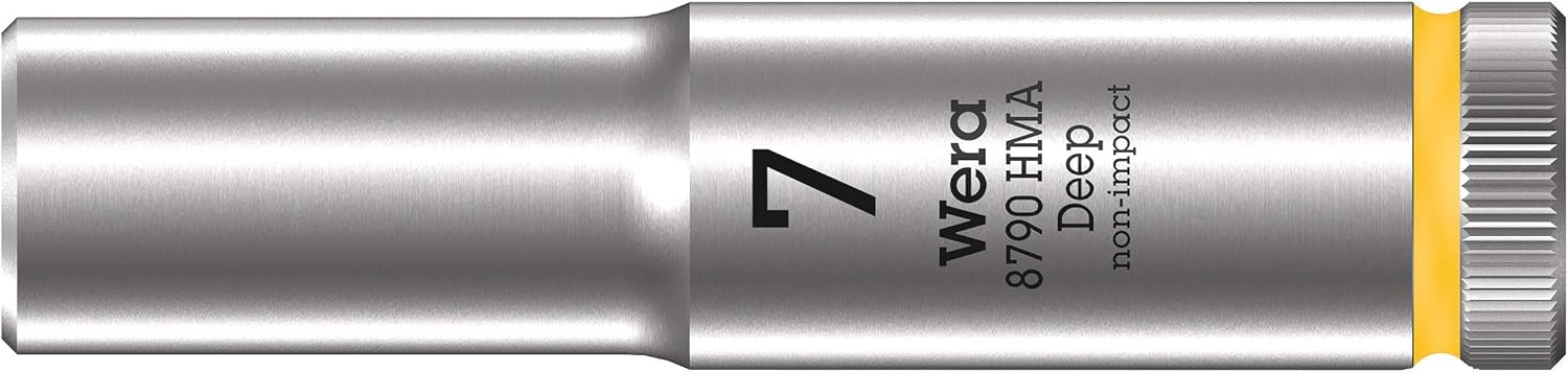 Robust textile belt in the typical Wera design with 9 long 1/4“manual and machine socket inserts (non-impacting) in a confined space. A smoother turning mechanism ensures a secure holding and easy removal of sockets. Includes snap hook for attaching to belt loops or bags. With fleece backing and hook and loop fastener strips for easy attachment e. g. on wall, shelf, workshop trolley or the Wera 2go tool transport system. Long 1/4“ manual and mechanical socket wrench inserts (ISO 2725 part 3) from Wera for use in manual and machine operation (non-impacting) even with low-lying screwdriving and protruding threaded rods. With “Take it easy" tool finder with colour coding by size - for easy and fast location of the required tool. Easy to grasp even with oily hands. With hexagonal profile and ball-catching groove. The hexagon profile allows the transmission of high forces and puts less strain on the edges of bolts or screw heads than a double hexagon profile. Fine-toothed ratchets also make the use of a double hexagon profile superfluous, even in confined spaces, thanks to their small back-pivoting angle. For external hexagonal bolts and sockets. Included components: 1x Belt A Deep 1 socket set, 1/4" drive, 9 pieces; 9x 8790 HMA Deep 1/4" socket: 5. 0x50. 0, 5. 5x50. 0, 6. 0x50. 0, 7. 0x50. 0, 8. 0x50. 0, 10. 0x50. 0, 11. 0x50. 0, 12. 0x50. 0, 13. 0x50. 0; 1x Socket rail A (textile belt), 9 location, unloaded, 39 x 238 mm; 1x Hook and Loop Fastener Strips 30, 200 x 30 mm.