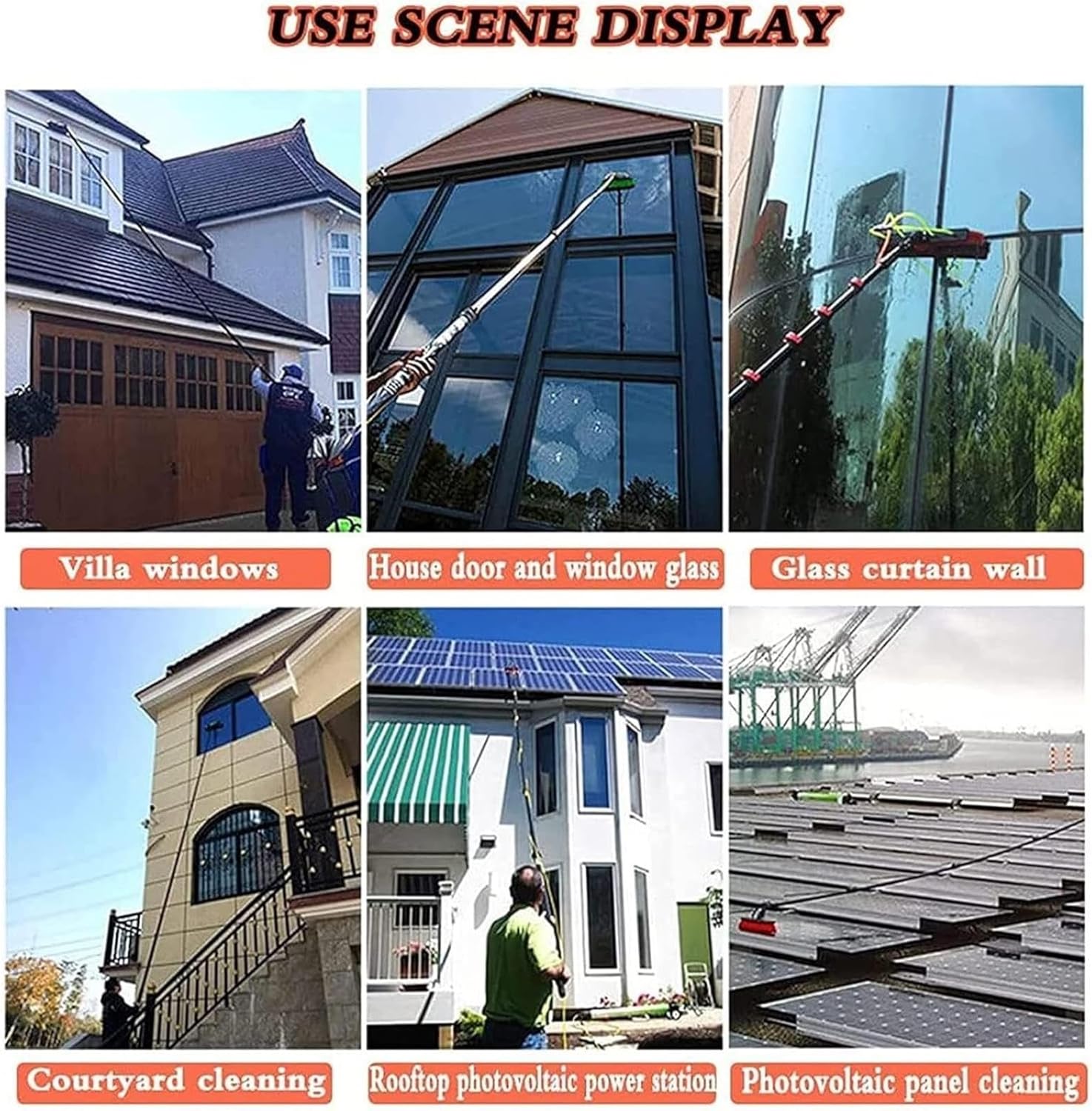 It's time to upgrade your window cleaning tools with a lightweight and efficient solution that makes every job safer, faster, and easier 【Features】 Reach high windows quickly and safely from the ground Lightweight design reduces fatigue and is easy to maneuver Integrated water supply system simplifies cleaning tasks Ideal for both personal and commercial use Versatile brush head options to suit various cleaning needs 【Product Information】 Product Name: Window Cleaning Pole Material: High-Density Aluminum Alloy Available Sizes: 3.6m / 5.4m / 7.2m / 9m Brush Head Width: 30cm, 50cm Water Supply Hose Length: 20m Single Pole Length: 1m or 1.5m 【Package Includes】 1 × Window Cleaning Pole 1 × Water Supply Hose 1 × Brush Head (30cm or 50cm, depending on model)