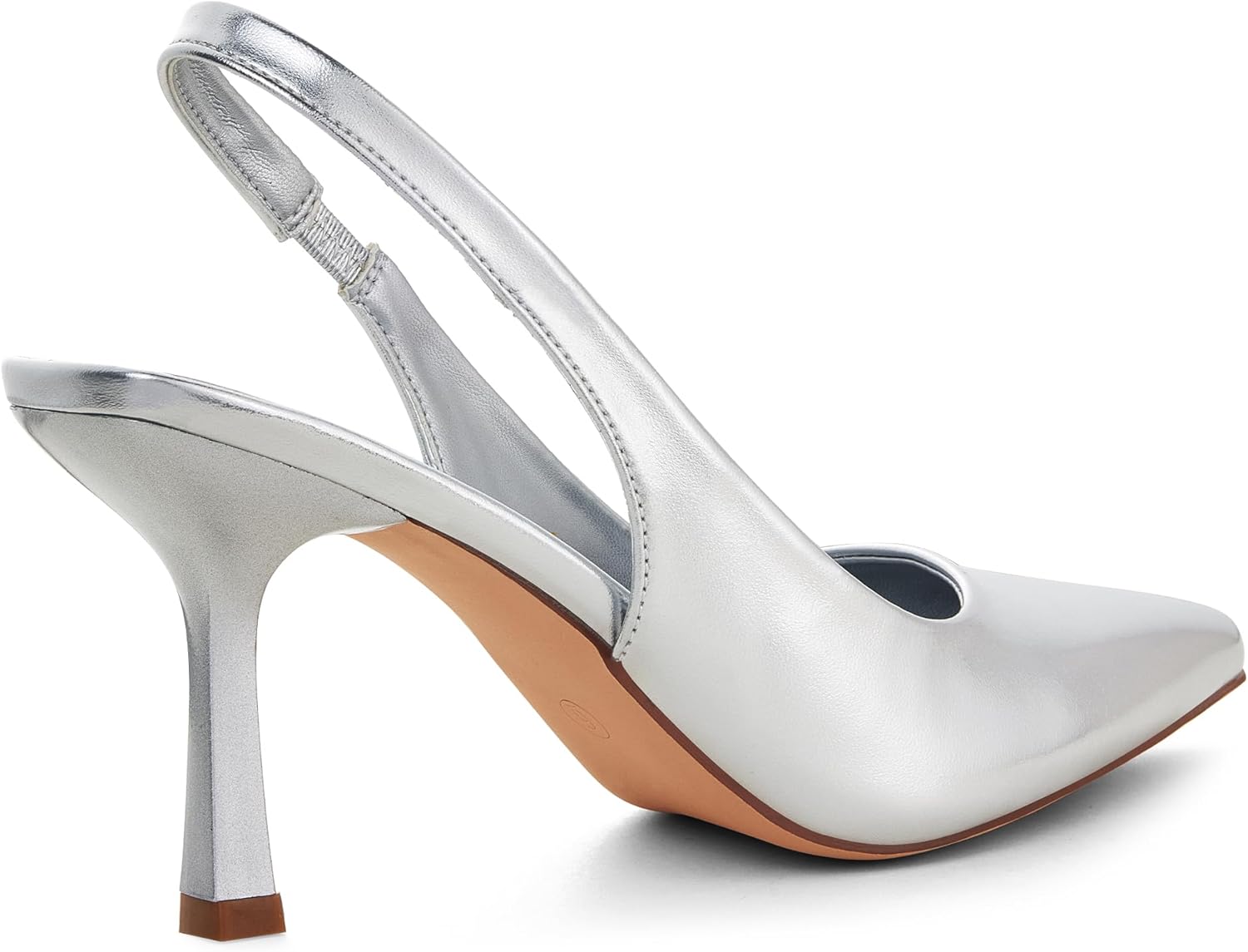 【Slingback Stiletto Heel】:Heel height measures approximately 3" (8cm). pointed closed toe stiletto pumps mid heel show off your sexy and figure to perfection, elongate your legs !