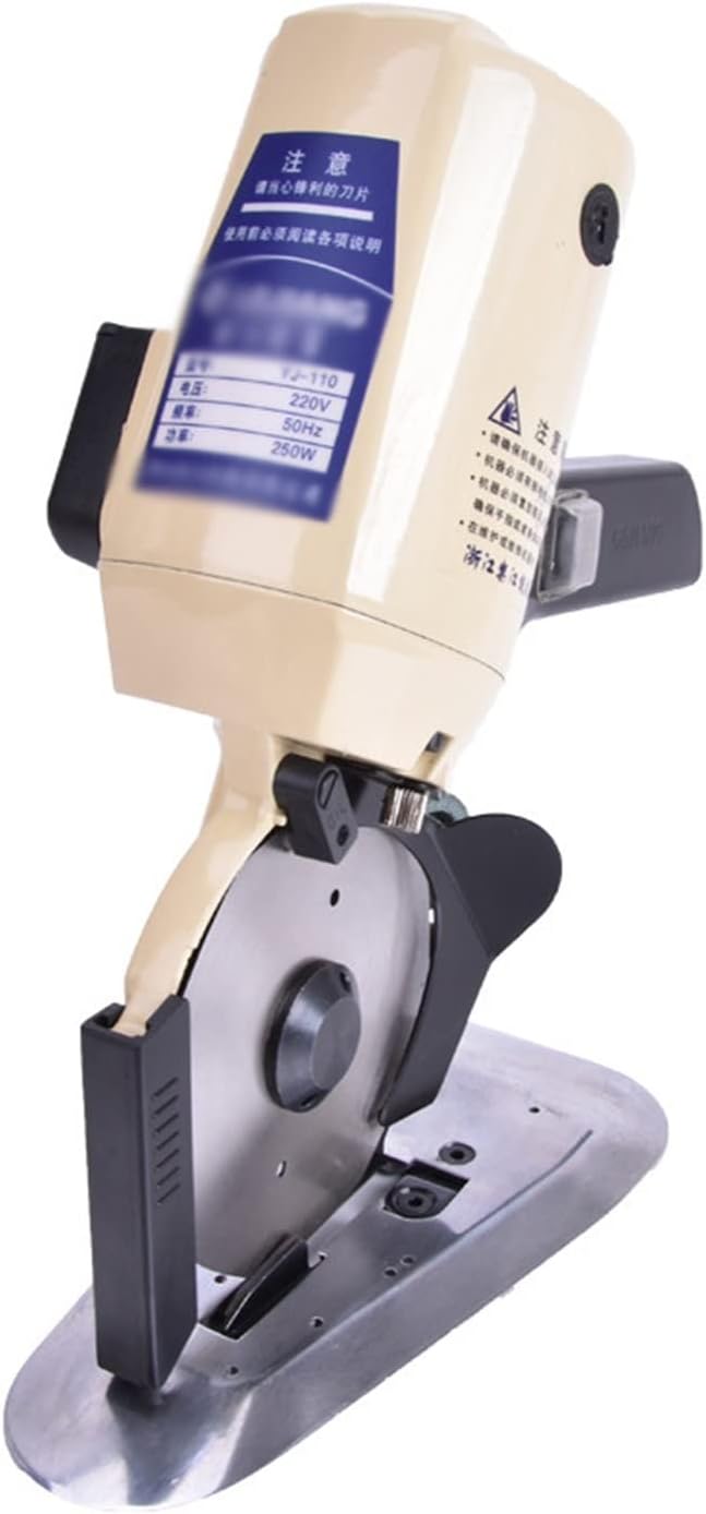 Electric Cloth Cutter, Electric Scissors, Power ToolsSpecifications:Product name :YJ-110 round knife cutting machinePower :248WNet weight : about 4.5 kgBlade shape :8 angleMax Cutting Thickness :30mmCutting height :32mmProducts suitable for the field:Clothing (leather, cloth, wool, silk and other products proofing, finishing)Leather products (leather shoes, leather belts, bags, etc.)Textile (fabric, ribbon, rope)Rubber products (raincoat, rain boots, rubber boats, diving suits)The paper (cardboard, paper and plastic products)Blanket, carpetArts & Crafts giftsFurniture sofaUmbrellaHattingBulletproof vestsMain technical specificationsBlade size 110MMBlade shape 8 angleClipping height: 32M
