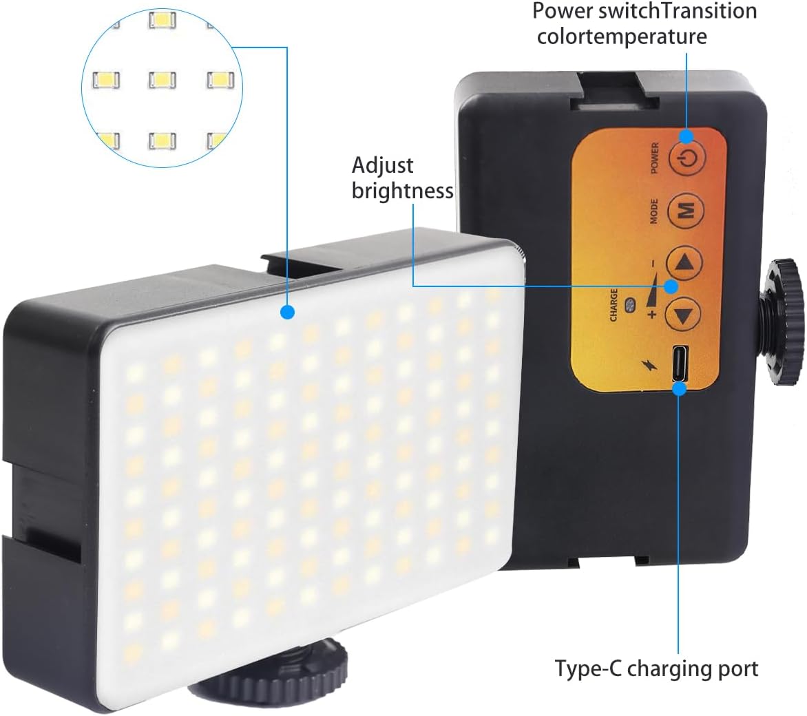 | Flash Modes Description | Constant illumination with adjustable brightness and color temperature (3 modes: Bright White, Bright White + Warm Yellow, Warm Yellow) |